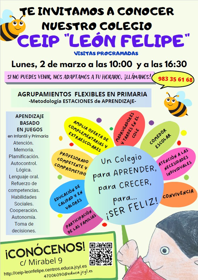 DIRECCIÓN: C/ Mirabel, Nº 9A 47010 Valladolid CUALQUIER COMUNICACIÓN CON EL CENTRO SE REALIZARÁ A TRAVÉS TELÉFONO 983 35 61 68 CORREO ELECTRÓNICO: 47006090@educa.jcyl.es |